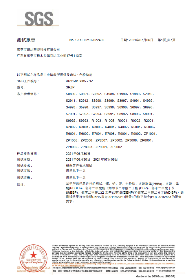 和鵬達塑膠科技有限公司合作很長一段時間了,他們的產(chǎn)品質(zhì)量好,服務到位,且原材料都通過SGS測試符合歐盟REACH,PaHS、ROHS及無鹵指令,備有美國FDA級食品接觸規(guī)格物料,和他們合作完全沒有后顧之憂!